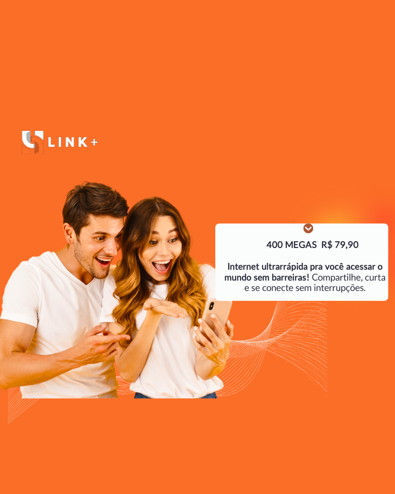 A internet 100% Link+ NET leva alta velocidade e estabilidade de sinal pra você aproveitar a melhor experiência de conexão. Levamos a fibra dentro da sua casa, e não apenas até o poste. Por isso, a nossa internet fibra é mais rápida e com menos oscilação de sinal. Publique fotos e vídeos muito mais rápido nas redes sociais, assista a vídeos, filmes e séries com conexão estável, jogue online sem lag e trabalhe em home office à vontade. Assine nossos planos e aproveite.